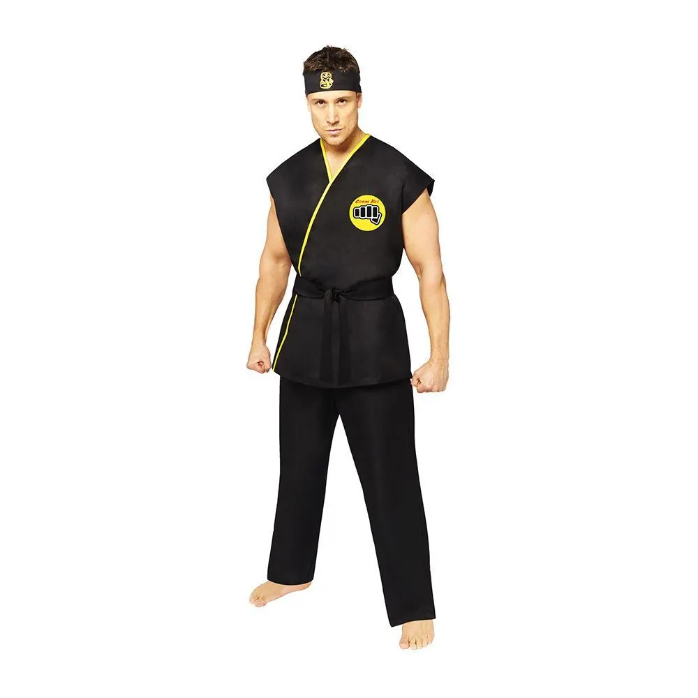 Includes 1 Costume Cobra Kai Gi Contains: Sleeveless Wrap Top, Trousers, Belt & Headband Size: Adult XL High-quality Perfect costume for your theme parties Coordinate with other party accessories