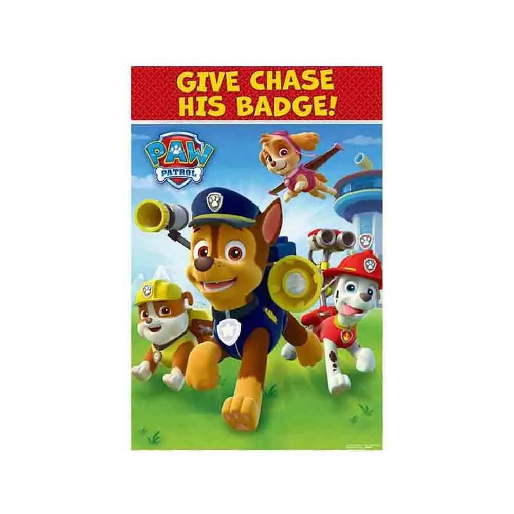 Includes 1 Paw Patrol Game Give Chase His Badge! Contains: 1 Plastic Game Board 37 (95cm) x (62cm) 2 Sticker Sheets 1 Paper Blindfold High-Quality Great for birthdays and theme parties Coordinate with other party supplies and party favours