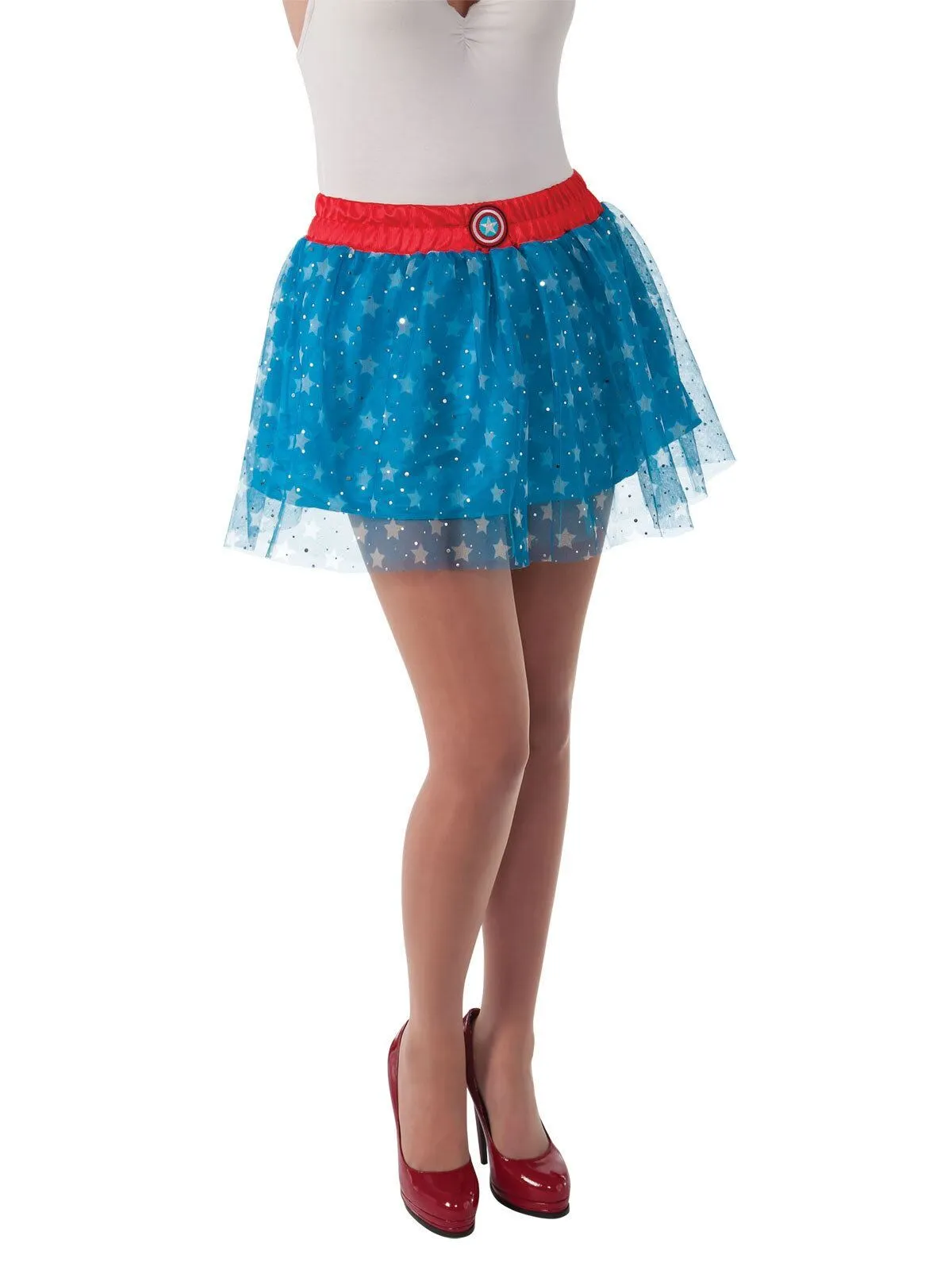 Available Online. For instore availability please call us on 07 3279 1555 Â American Dream – real Name Shannon Carter, alias American Dream, or the female version of Captain America. She’s the Leader of the Dream team and one of the hottest characters in the Marvel Cinematic Universe. Just like Captain America, she has a trademark American shield to combat the villains in Marvel’s comics.INCLUDESTutu skirt with nylon underlayTulle overlay with star print and glitter dot applicationElastic waistband with embroidered shield embellishment at waistThis is an officially licensed Marvel product