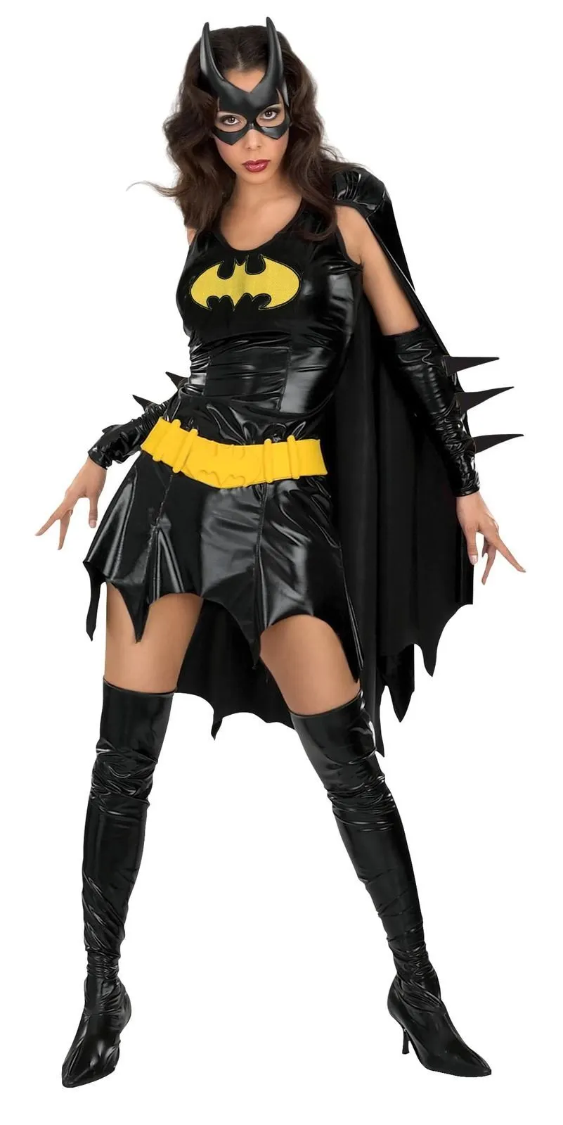 Available Online. For instore availability please call us on 07 3279 1555 Â One of the most famous DC Comics superheroines, Batgirl, also known as Barbara Gordon is the daughter of Chief Commissioner Gordon. She stars in comics, movies, TV series and also as one of the DC Superhero Girls. A female version of the famous Batman, Batgirl uses her batarangs and bat-cycle to help fight crime and clean up the streets of Gotham City.INCLUDESDress in vinyl look fabric with bat emblem on chest plus scalloped hemline on skirtMoulded mask with upright bat ears and elastic strap with velcro fasten plus cape with scalloped hemMoulded belt with bat emblem at centreVinyl look gauntlets with bat fins on sides plus thigh high boot tops in vinyl look fabricThis is an officially licensed DC Comics product