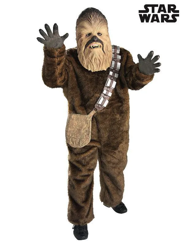 Available Online. For instore availability please call us on 07 3279 1555 Â He is everyone’s favourite hairy Wookie. The walking carpet of the outer galaxy, Chewbacca, often called “Chewie” is co-pilot to Han Solo on his spaceship The Millennium Falcon. Together Chewie and his friends in The Resistance fight against the Dark side in Disney/Lucas Films’ infamous Star Wars series. See him in A New Hope (1977), The Empire Strikes Back (1980), Return of the Jedi (1983), Revenge of the Sith (2005), The Clone Wars (2008), The Force Awakens (2015), Rogue One (2016) and The Last Jedi (2017). INCLUDES Jumpsuit in faux fur front and back Moulded latex gloves with painted features Overhead moulded latex mask with painted features and holes for eyes and mouth Moulded latex bandolier with painted features and attached pouch This is an officially licensed Star Wars product