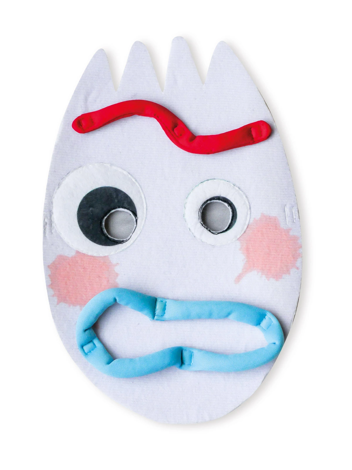 Available Online. For instore availability please call us on 07 3279 1555 Â Forky is an adorable, demented little spork (not a fork) outfitted with pipe-cleaner arms and a cute, squiggly face. It’s the type of toy that could only be loved by a child! But is he really a toy? From the famous Disney Pixar Film Toy Story, Forky is one of the residents of Andy’s toy box of fun and is often found in Bonnie’s bedroom. With his home-made look, Forky is good friends with Buzz Lightyear, Woody and Jessie. Voiced by Tony Hale, he is a secondary character in all three Toy Story movies, dated 1995, 1999 and 2010 and now the new Toy Story Four movie in 2019! INCLUDES Jumpsuit with detailed digital print including a body with glitter buttons and pipe cleaner print on full-length sleeves Pair of gloves with pipe cleaner print and 3 fingers Attached foot covers with the printed rainbow emblem Felt mask with forkhead shape, printed detail and moveable mouth and eyebrow features This is an officially licensed Disney Pixar product