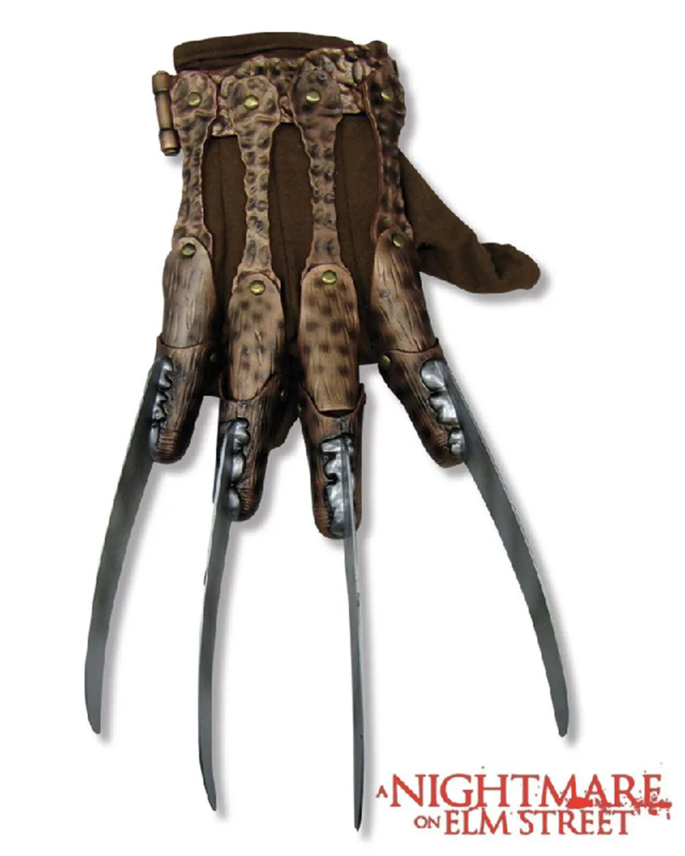 Available Online. For instore availability please call us on 07 3279 1555 Â “Don’t Go to Sleep!” Defy sleep or risk a visit from Freddy Kreuger himself, protagonist of the 1984 horror movie “A Nightmare on Elm Street”. A severely burnt serial killer, Freddy uses a gloved arm with razors to kill his victims in their dreams, causing their deaths in the real world as well. Appearing in movies, TV series like “Freddy’s Nightmares”, video games and comics, Freddy is known for his disfigured face, red-and-green striped sweater, brown fedora, and that metal-clawed brown leather glove, made for murder. He is a pop culture icon who depicts true Horror. On Halloween, why not try this glove on for size?. INCLUDES A pair of soft synthetic gloves with attached plastic blades Moulded plastic with blunted ends and painted features Adjustable strap at wrist Approximately 3cms high and 8cms wide This is an officially licensed A Nightmare on Elm Street product