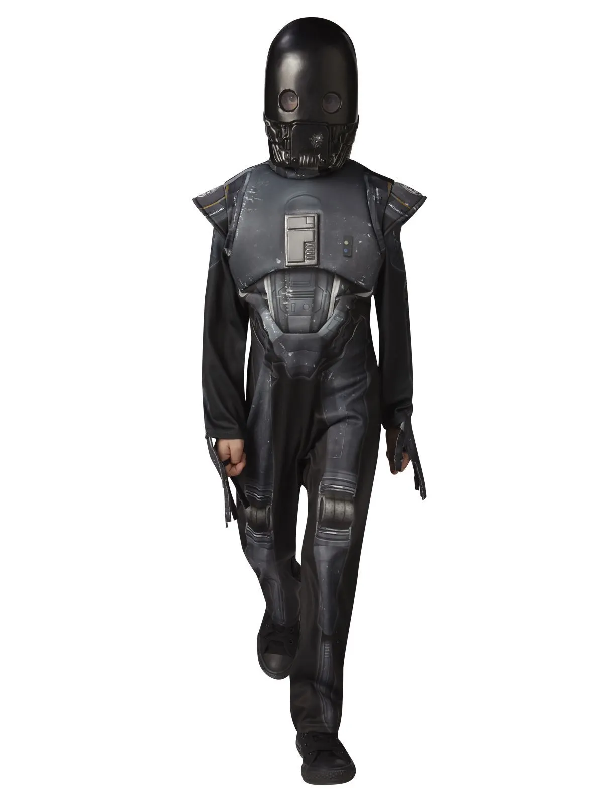 Available Online. For instore availability please call us on 07 3279 1555 Â It appeared first in Lucas Film/Disney’s Star Wars: Rogue One. A robot and Imperial Security droid – K-2S0, unlike earlier droids C-3PO, R2-D2 and BB-8 is downright hilarious, with a uniquely dry and disturbingly honest wit. Become K-2SO today. INCLUDES Jumpsuit with 3D foam chest panel and shoulder armour plus digital print and stitching details Full length sleeves with printed details and attached hand covers with elastic straps Pants with digital print Moulded mask with painted features, eye covers and elastic strap This is an officially licensed Star Wars product