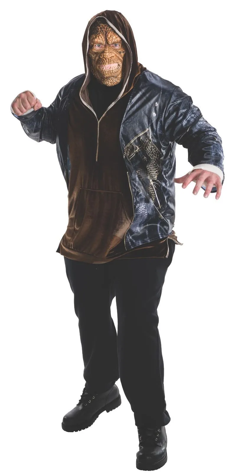 Available Online. For instore availability please call us on 07 3279 1555 Â Not your prettiest Reptile, Killer Croc has a rare genetic condition which gives him a crocodilian appearance. His impenetrable scaly skin and animal instincts make him a force to be reckoned with. A DC Comics supervillain, he takes on the elusive Batman in Warner Bros blockbuster movie Suicide Squad (2016). Gotham City’s most evil cold-blooded killer, the Croc is played by English actor Adewale Akinnuoye-Agbaje. INCLUDES Jacket with digital print and attached hoodie Two hand wraps Moulded half mask with painted features and elastic strap Pants not included This is an officially licensed DC Comics product