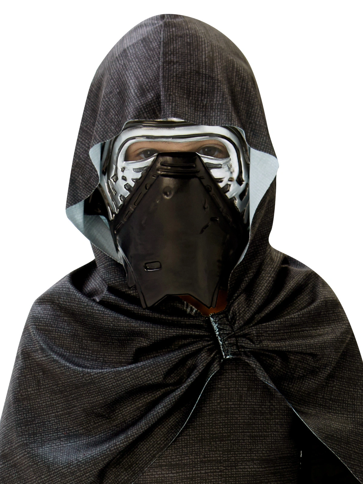 Available Online. For instore availability please call us on 07 3279 1555  Kylo Ren is the chosen name of Ben Solo, son of Han and Princess Leia Organa. Trained as a Jedi by Luke Skywalker, he was taken to the dark side by Supreme Leader Snoke in Disney/Lucas Film’s blockbuster Star Wars movies The Force Awakens (2015) and The Last Jedi. Played by Actor Adam driver, Kylo is as dark on the inside as his black cloak and helmet.INCLUDESRobe in polyester with printed details and full length sleevesPrinted hooded cape with gathered front and off centre velcro fastenAttached printed belt at frontMoulded mask with painted features and elastic strap with velcro fastenThis is an officially licensed Star Wars product   Â