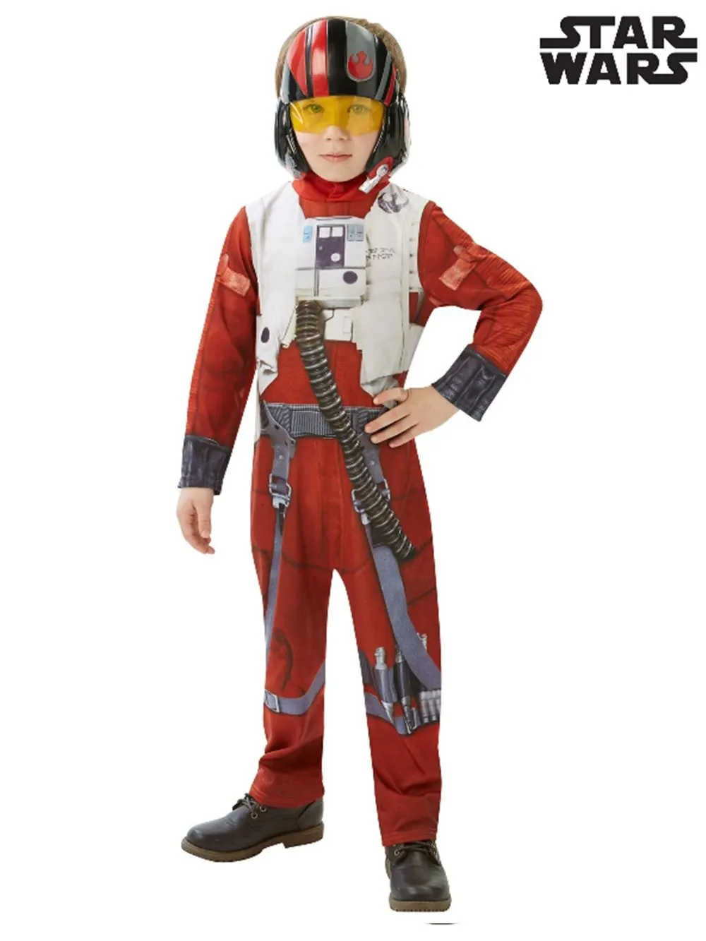 Available Online. For instore availability please call us on 07 3279 1555 Â He “can fly anything”. X-Wing Fighter Pilot and Commander in the Resistance Star fighter Corp, Poe Dameron stars in the Disney and Lucas Film productions of Star Wars: The Force Awakens (2015) and The Last Jedi (2017). Trustworthy friend of Princess Leia Organa and his droid BB-8, this fighter pilot looks great in orange as he joins the Resistance to fight the evil of the First Order. May the force be with you Poe. INCLUDES Jumpsuit with printed bodice including chest-mounted control panel Full-length sleeves with digital print Pants with digital print including harness Moulded half mask with painted details and transparent eye cover plus an elastic strap This is an officially licensed Star Wars product Â