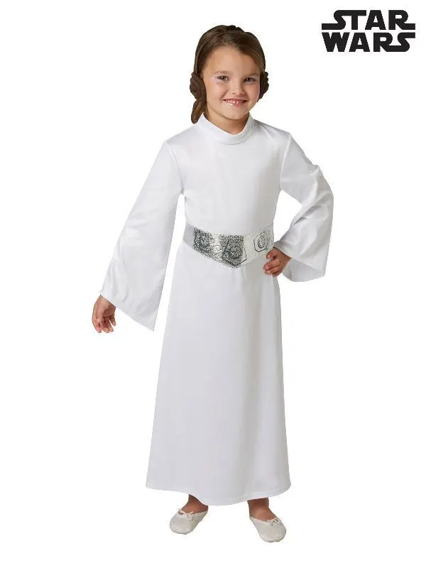 Available Online. For instore availability please call us on 07 3279 1555 Â Become the Rebel Alliance’s Greatest Leader. Fearless and strong, she, along with friends like Han Solo and brother Luke Skywalker bring down the Death Star in the famous Lucas Film and Disney Star Wars series. Played by the iconic Carrie Fisher, Princess Leia Organa appears in Star Wars: A New Hope (1977), The Empire Strikes Back (1980), Return of the Jedi (1983), Revenge of the Sith (2005), The Clone Wars (2008), Star Wars: Rebels (2014), The Force Awakens (2015), Rogue One (2016) and The last Jedi (2017). She is known for her trademark long white dress and immaculate plaited hair buns. This woman is a heroine of all the Galaxies as she fights like a Jedi with her lightsaber. Dressed as Princess Leia, you know the force will always be with you. INCLUDES Long dress in polyester with stand away collar and full length trumpet sleeves Foam backed belt in metallic fabric with printed details and fasten at back Headband in polyester with bun features at sides This is an officially licensed Star Wars product Â