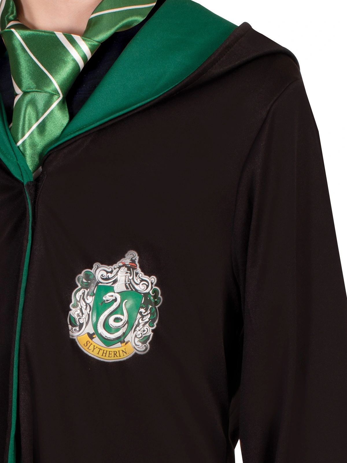 Product Details It is the green and silver House at Hogwarts School of Witchcraft and Wizardry, in the famous Harry Potter series by author J K Rowling. Slytherin is known for its cunning, resourceful and ambitious members and was founded by Salazar Slytherin. With a snake as its icon, famous members include Draco Malfoy and Severus Snape. Novels in this series include Harry Potter and the Philosopher’s Stone, Harry Potter and the Chamber of Secrets, Harry Potter and the Prisoner of Azkaban, Harry Potter and the Goblet of Fire, Harry Potter and the Order of the Phoenix, Harry Potter and the Half Blood Prince and Harry Potter and the Deathly Hallows. INCLUDES Ankle length robe in polyester material Attached hood with lining in house colours that extends down front of robe Heat transferred house emblem on left side of chest This is an officially licensed Harry Potter product