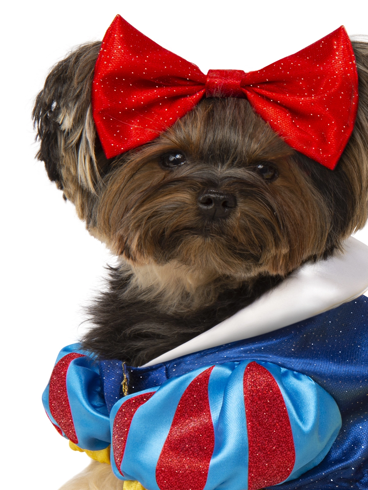 Available Online. For instore availability please call us on 07 3279 1555 Â Now your Pet Dog can wear the costume fit only for “the fairest of them all”! Snow White is the most delightful Disney Princess. And now your pet pooch can dress just like she did in the 1937 film Snow White and the seven Dwarfs. Your puppy will look a picture in this outfit – just make sure she sticks to beef bones rather than poison apples!INCLUDESDress with attached uptight collar and puffy sleevesRed Bow headpiece with elastic strap to secure around pup’s headFits a range of dog breeds – please refer to size chartThis is an officially licensed Disney product