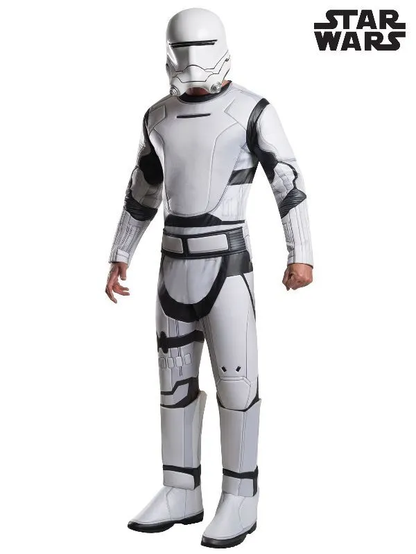 Available Online. For instore availability please call us on 07 3279 1555 Â A variant of the Dark Side’s Stormtrooper, the Flametroopers were first seen in Episode 7 Star Wars: The Force Awakens (2015) and are also called Roasters or Hotheads. They are equipped with flame-proof armour and were feared for their ability to turn any battlefield into a blazing inferno. Become a Flametrooper from the Lucas Film empire today. INCLUDES Jumpsuit with digitally printed bodice, padded armour with stitching detail and full length sleeves with print and padding Pants with printed detail on front and back plus attached 3D boot tops with print and stitching detail Belt with padding, digital print and stitchnig detail plus fasten at back Moulded 2 piece helmet with painted features and velcro joins This is an officially licensed Star Wars product