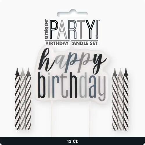 Unique 1 Happy Birthday Candle And Spiral Candles – Black 12 Pack