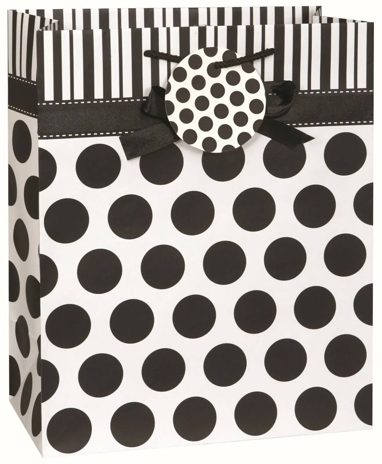 Unique Black & White Dots With Bow Large Gift Bag