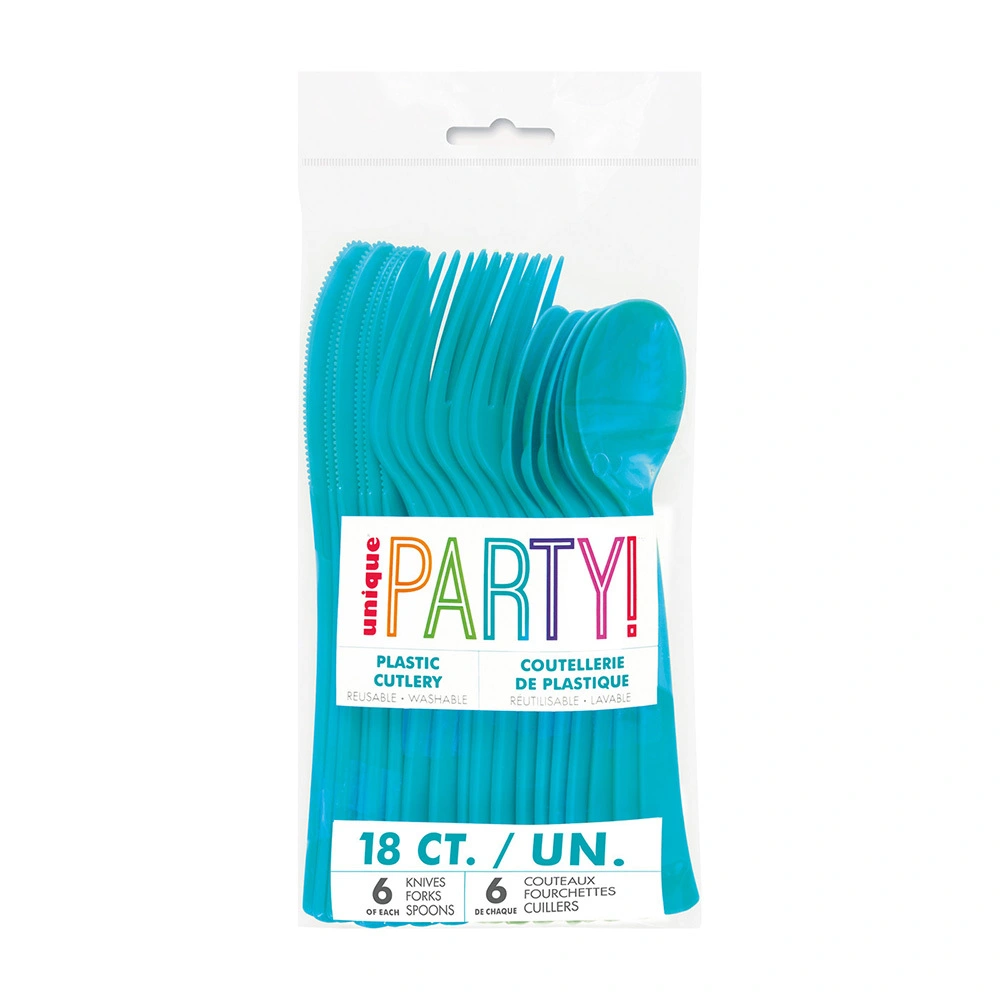 Includes 18 Caribbean Teal Assorted Reusable Cutlery High-quality Perfect accessory for your theme parties Coordinate with other Birthday party supplies and party decorations