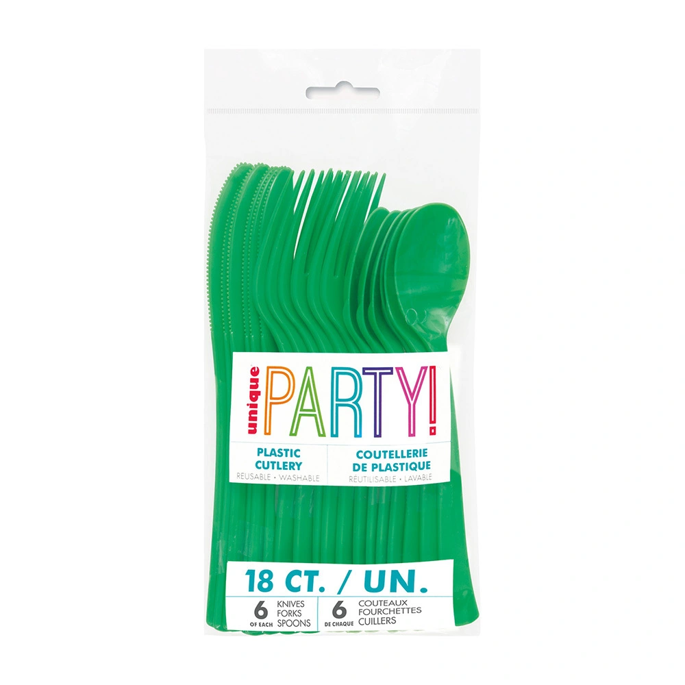 Includes 18 Emerald Green Assorted Reusable Cutlery High-quality Perfect accessory for your theme parties Coordinate with other Birthday party supplies and party decorations
