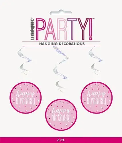 Unique Pink 6 Prismatic Hanging Swirl Decorations – Happy Birthday 81cm