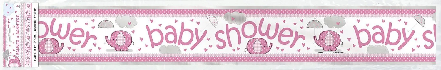 Unique Umbrellaphant Baby Shower Pink Baby Shower Foil Banner 3.65m