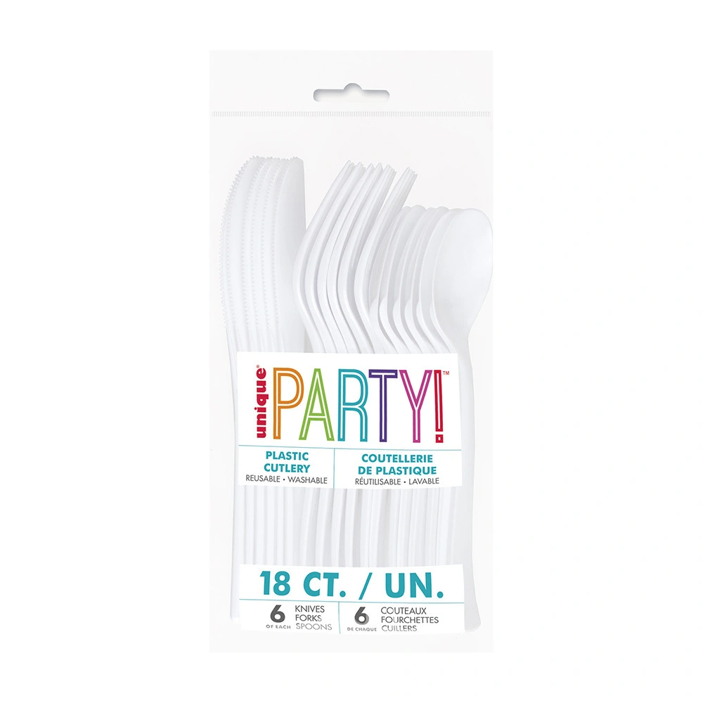 Includes 18 White Assorted Reusable Cutlery High-quality Perfect accessory for your theme parties Coordinate with other Birthday party supplies and party decorations